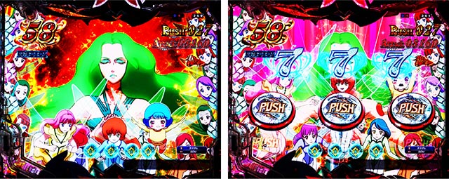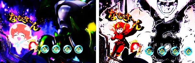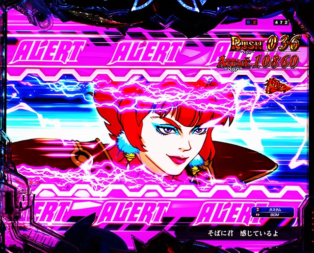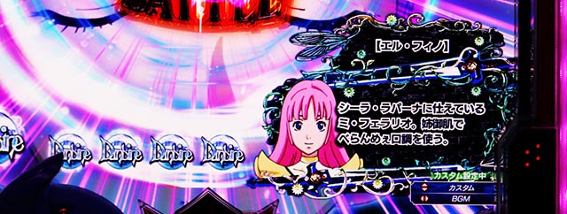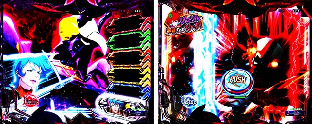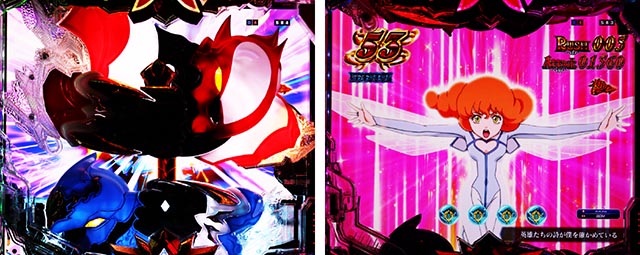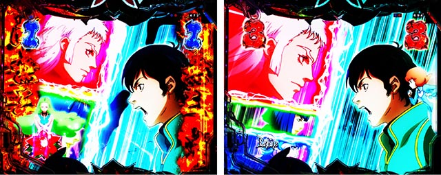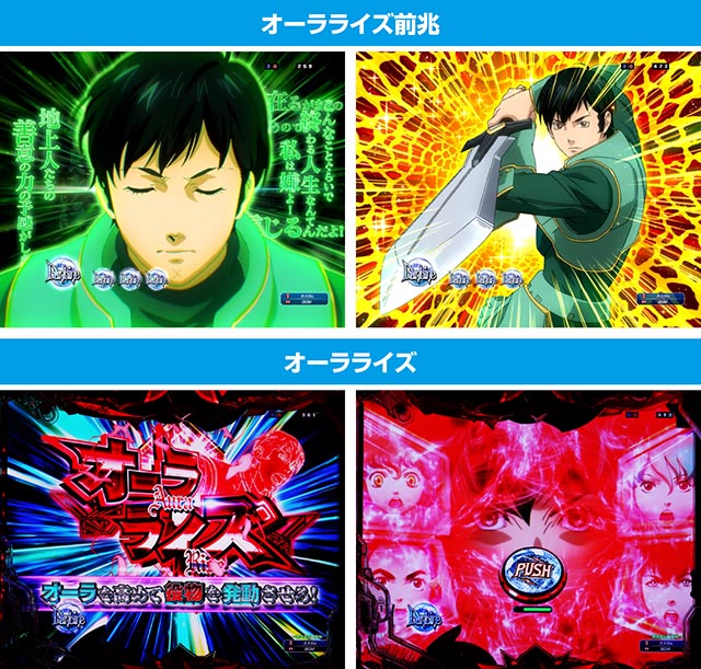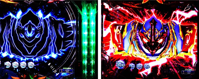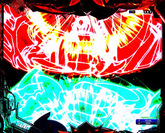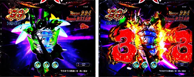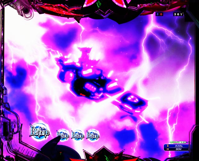 「完全バイン」に定めると、予告の発生時は画面にオーラバトラーのシルエットが出現して、当該変動のリーチを示唆する。しかし、設定内容による信頼度や大当り占有率は同一だ。
