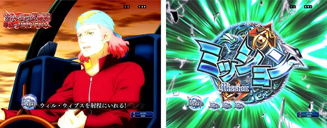 「完全バイン」では機体が出たあとにボタンを押すと、対戦相手を暗示するキャラボイスが生じ、「落ちろよー」「浄化をー」なら超激アツ。さらに当該変動で役物ビジョンが消えボタンが光ったら、ボタンは押さずにウェーブギアを引く裏裏ボタンというべき秘密が隠されている。