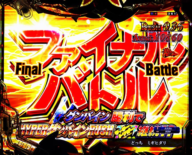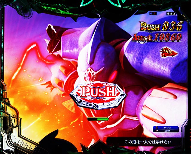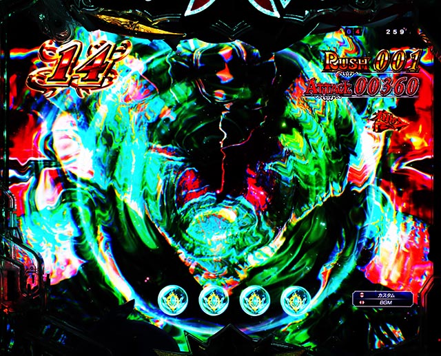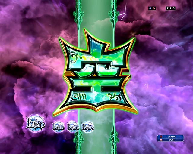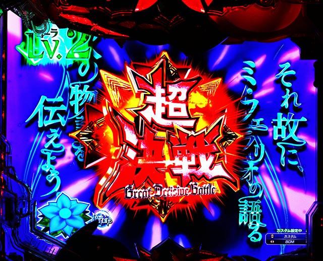 [タイトル]デフォルト[テロップ]デフォルト[楽曲]闘いの詩[オーラ力増幅]あり[当落ボタン]レバー |