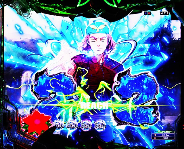 通常時は変動開始時とSPリーチ発展時に発生すれば高確率で大当り。LT中はカスタムを問わず発生した時点で大当り濃厚で、出玉は4R以上を保証する。