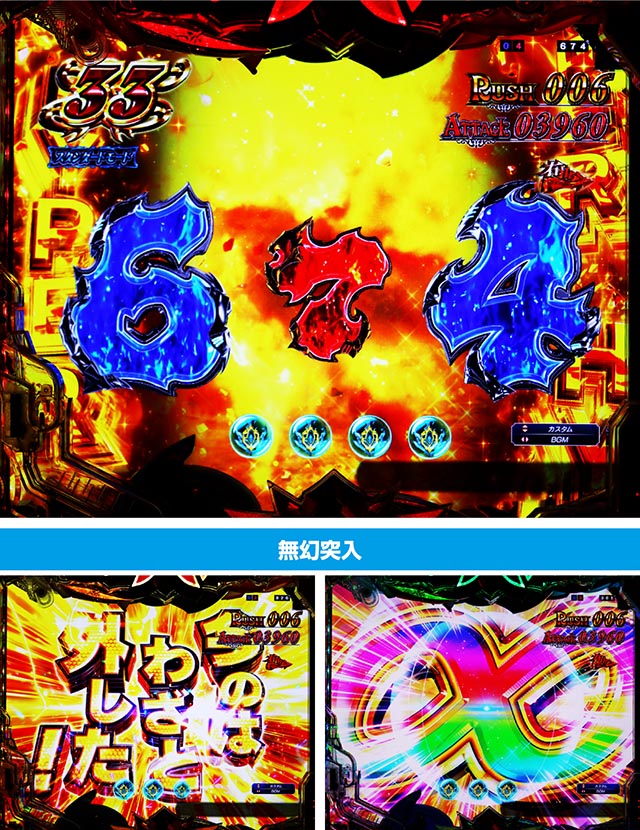 カスタムによりサミー恒例の鬼アツ予告の出現率&大当り占有率が大きく変わる。