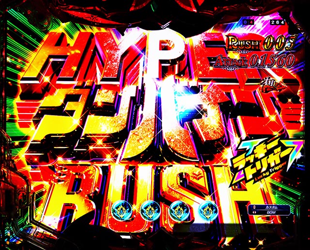 RUSH最大の特色は大当りがシームレスに発生することにあり、これにより連チャン時の出玉増加速度は現役マシンのなかでもトップクラスとなっている。