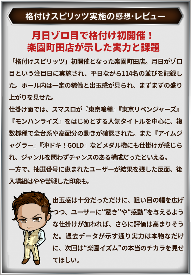 10月10日(金)楽園町田店にて、DMMぱちタウンの「格付けスピリッツ」を実施。