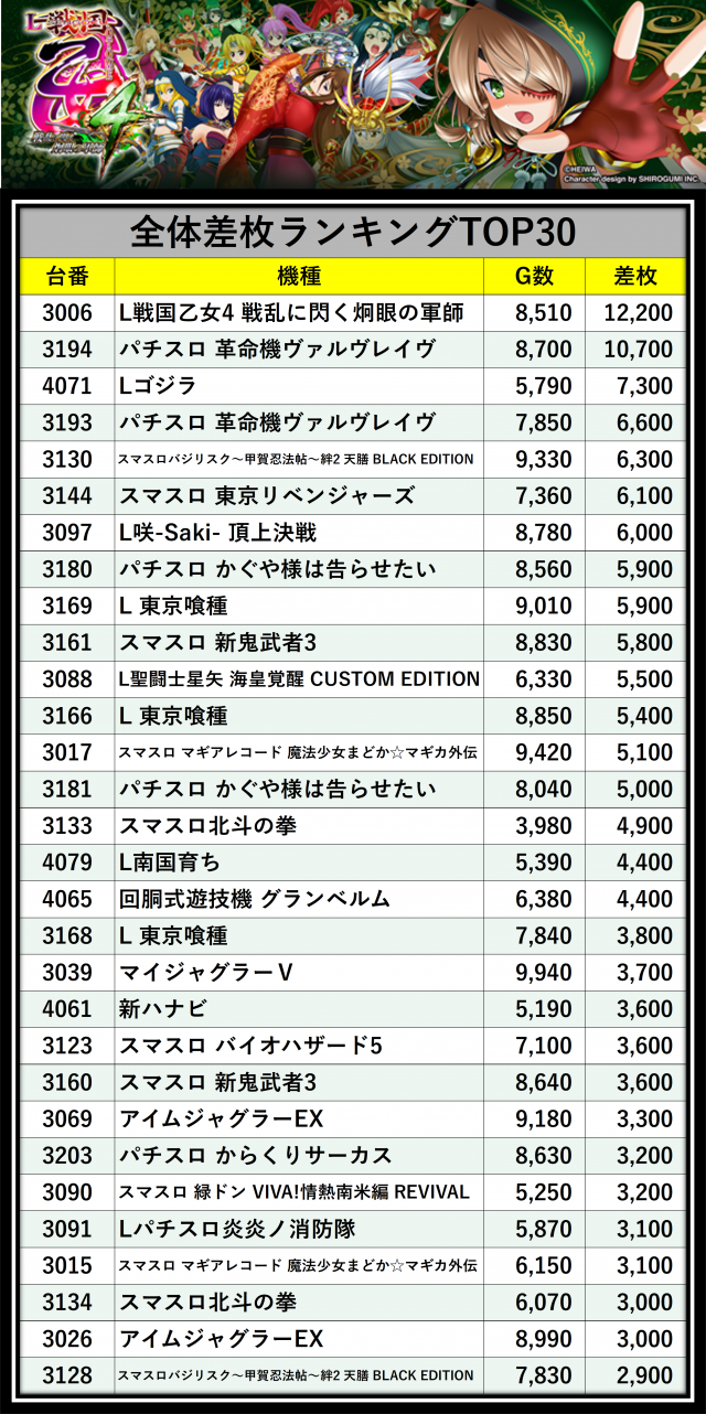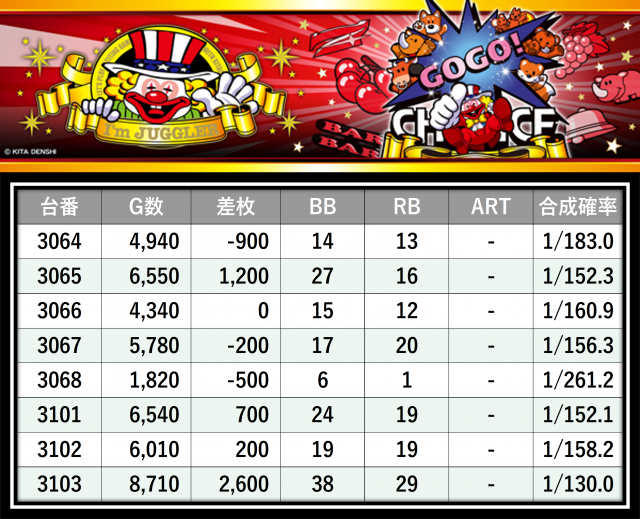その結果の中から、ぱちタウンが注目すべきポイントを厳選してユーザーにお届け!プレイヤーが楽しんだ一日を下記データにて振り返ってみて欲しい。