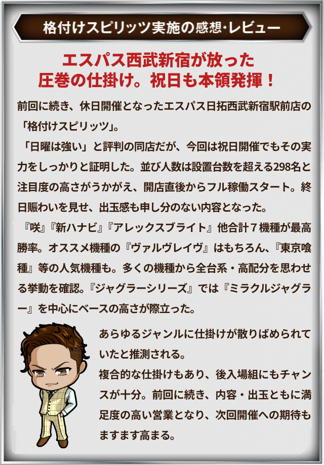 10月13日(月)エスパス日拓西武新宿駅前店にて、DMMぱちタウンの「格付けスピリッツ」を実施。