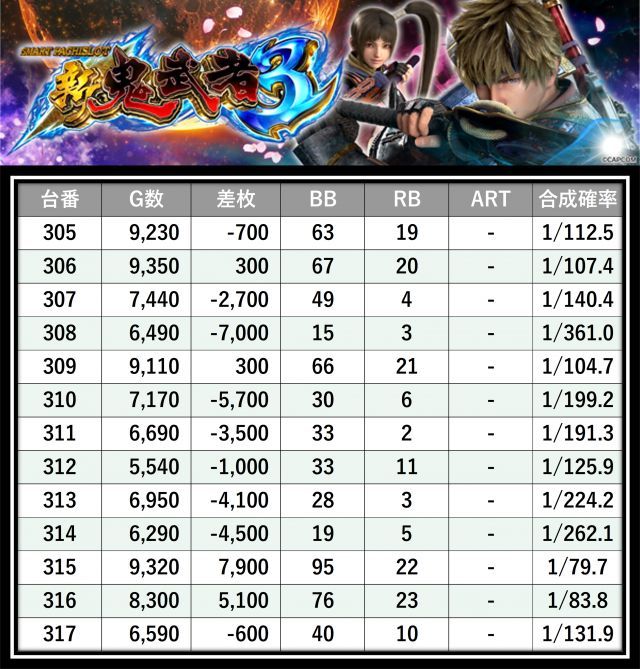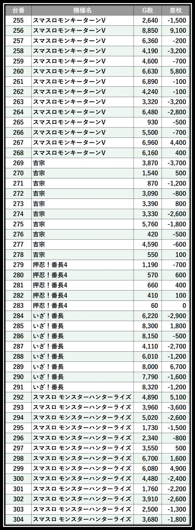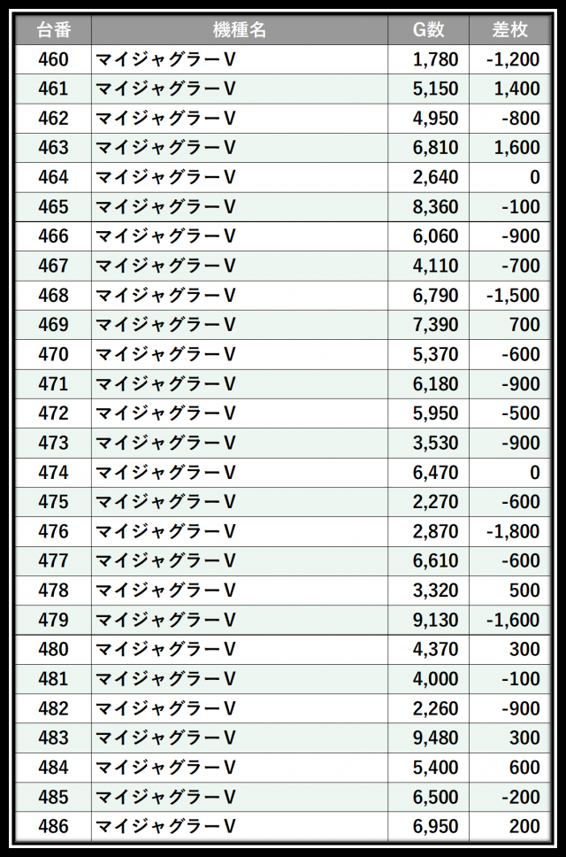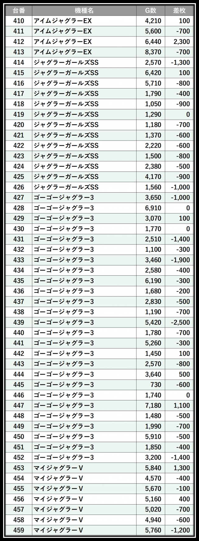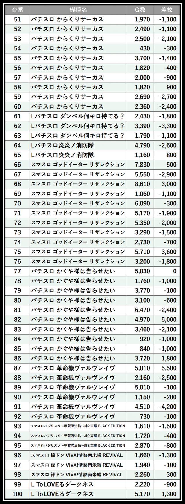 ※差枚数順に掲載しています
