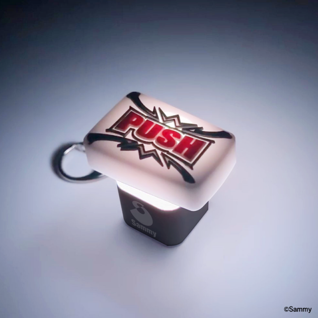 原寸大のリアルなPUSHボタンが付いたサウンドキーホルダー。