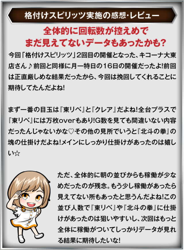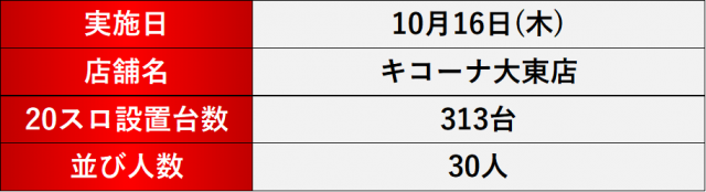 10月16日(木) キコーナ大東店にて、DMMぱちタウンの「格付けスピリッツ」を実施。
