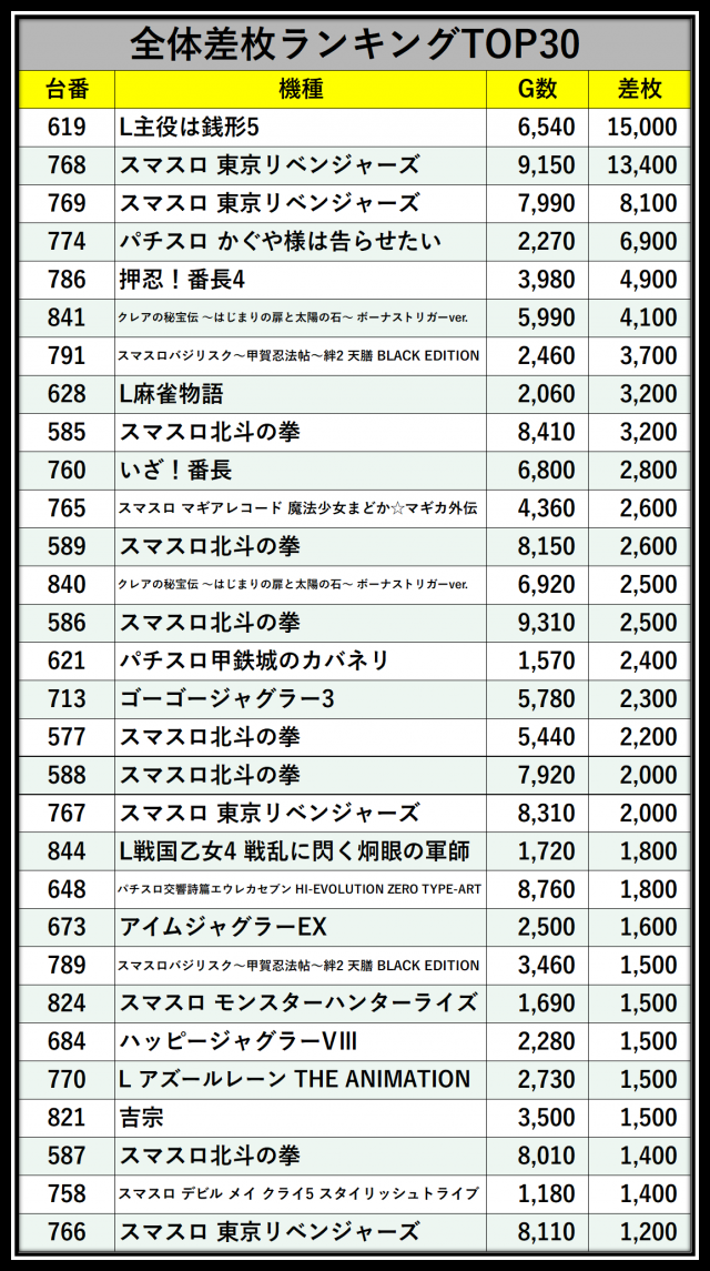 その結果の中から、ぱちタウンが注目すべきポイントを厳選してユーザーにお届け!プレイヤーが楽しんだ一日を下記データにて振り返ってみて欲しい。
