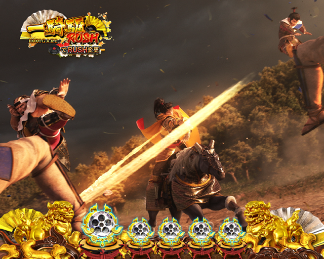城門を突破できれば大当りの定番RUSHです。超天下無双RUSH中にだけ、「黄金舞台」到達で大チャンス、という専用演出が用意されています。