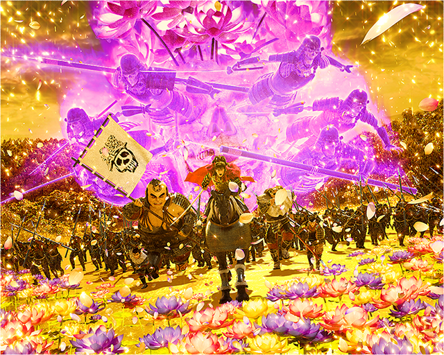 | レバ熱告知カスタム | OFF/赤/虹 入賞時にホラ貝&「いざ参る」ボイス発生でチャンス |