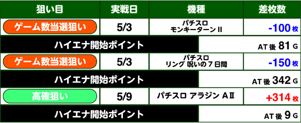 GWのせいで人が多く、ハイエナしようと試みるも全く打てる台が見つけられなかったので、次のハイエナとしての稼働は少し空いて9日。ハイエナせずにパチンコ打ったり、設定やゾーンなど気にせずに乱れ打っていたので、GW期間の収支は大幅にマイナスですけどね…。