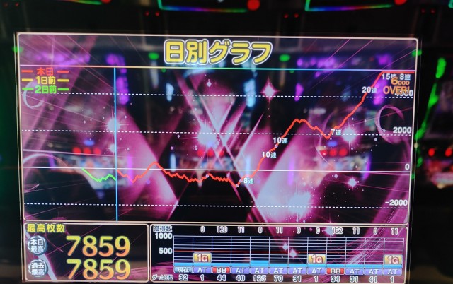 序盤は揉み揉み展開で設定的にも期待できなそうでしたが、途中からは上位ATに入り有利区間切断、ポジションゼロモード、AT中の中段チェリーや上位AT中に上乗せ完走と、やってみたいことを全て体験できて最高の日になりました。