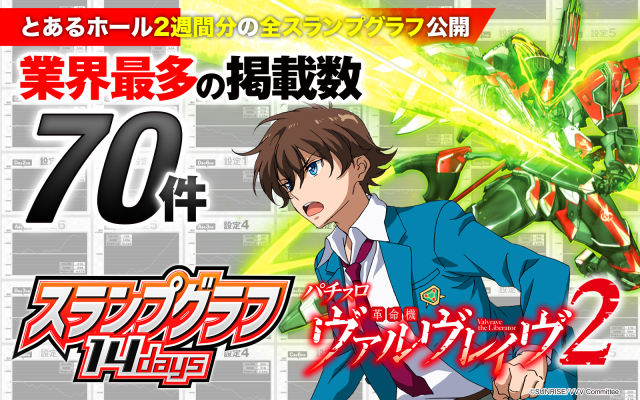 とあるホールから入手した人気機種のスランプグラフを設定付きで掲載&考察していく当企画! 今回は『Lパチスロ 革命機ヴァルヴレイヴ2』の2週間分のスランプグラフをいただきました。