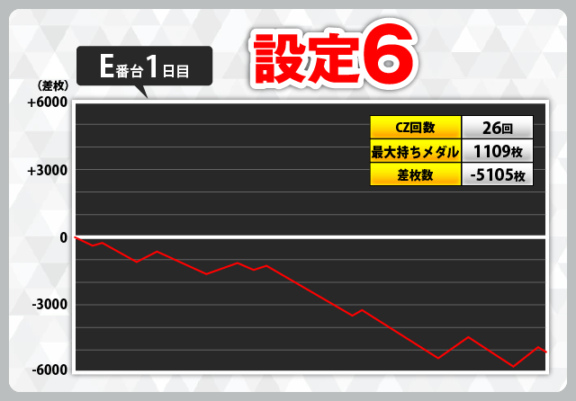 | 1 | +14715枚(設定6) | −8116枚(設定1) |