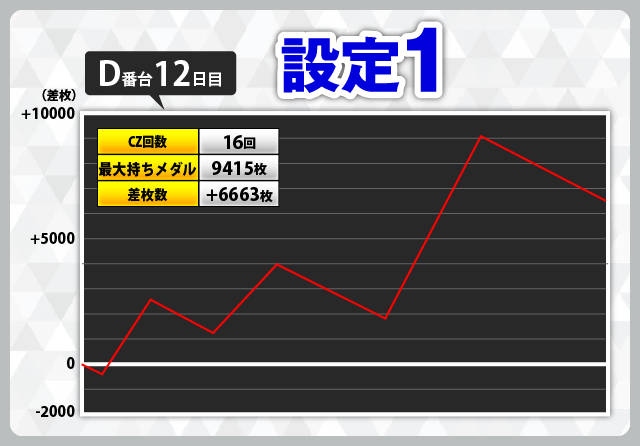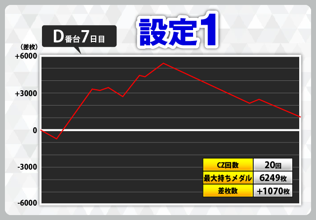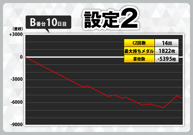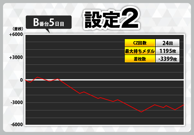 | 2 | +13875枚(設定6) | −7040枚(設定1) |