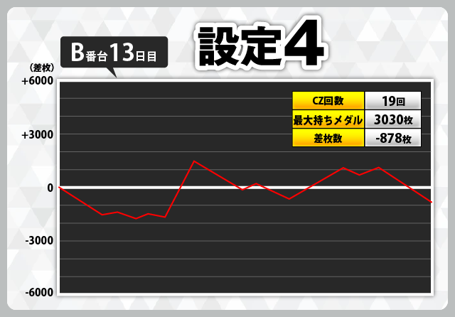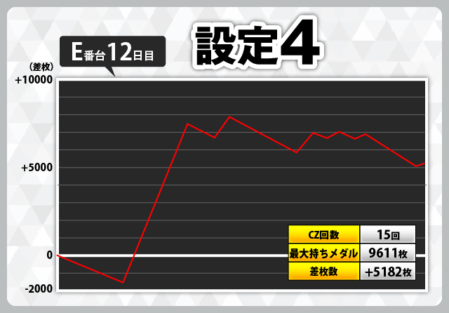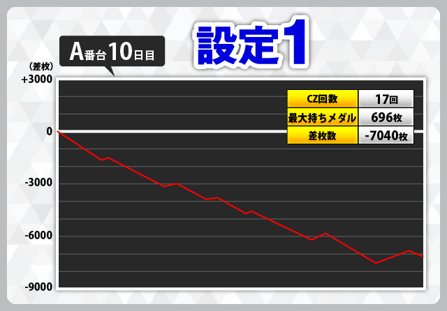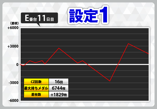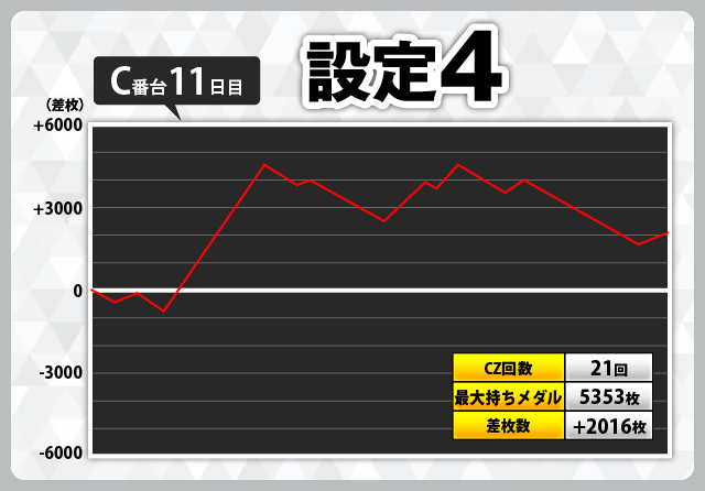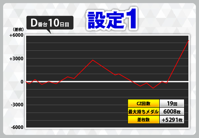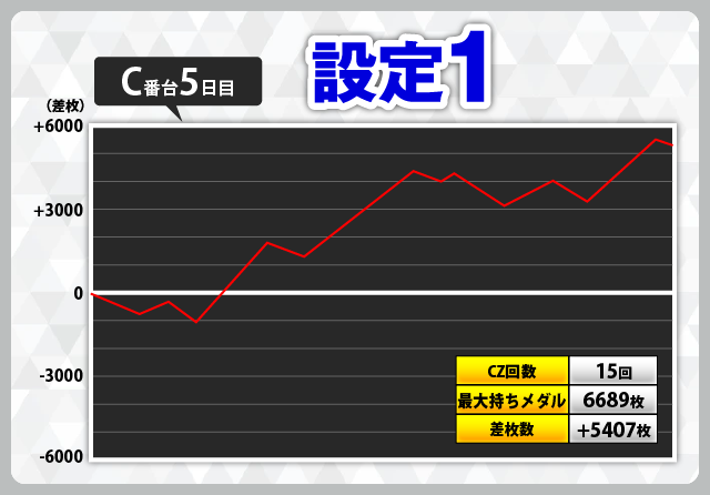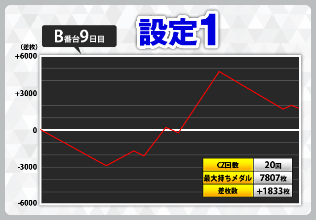 | 3 | +11070枚(設定5) | −5912枚(設定1) |