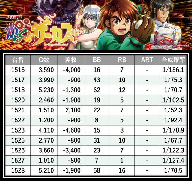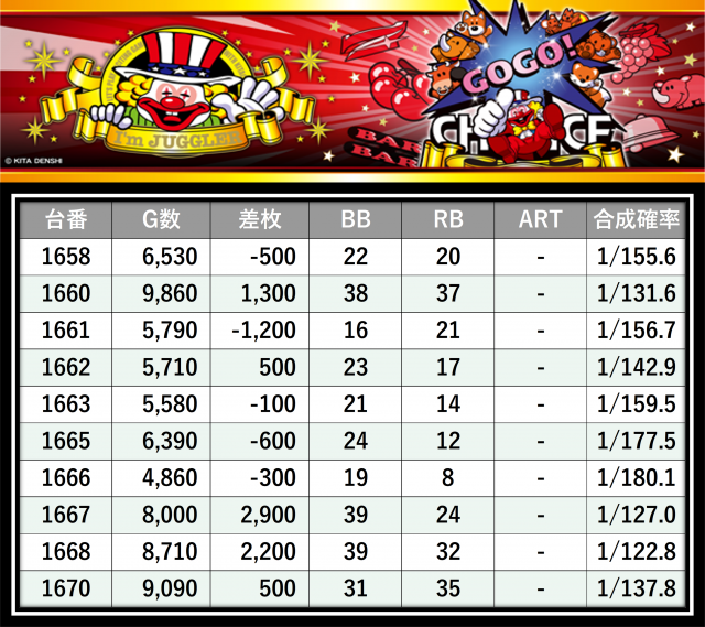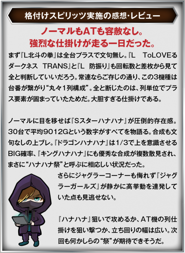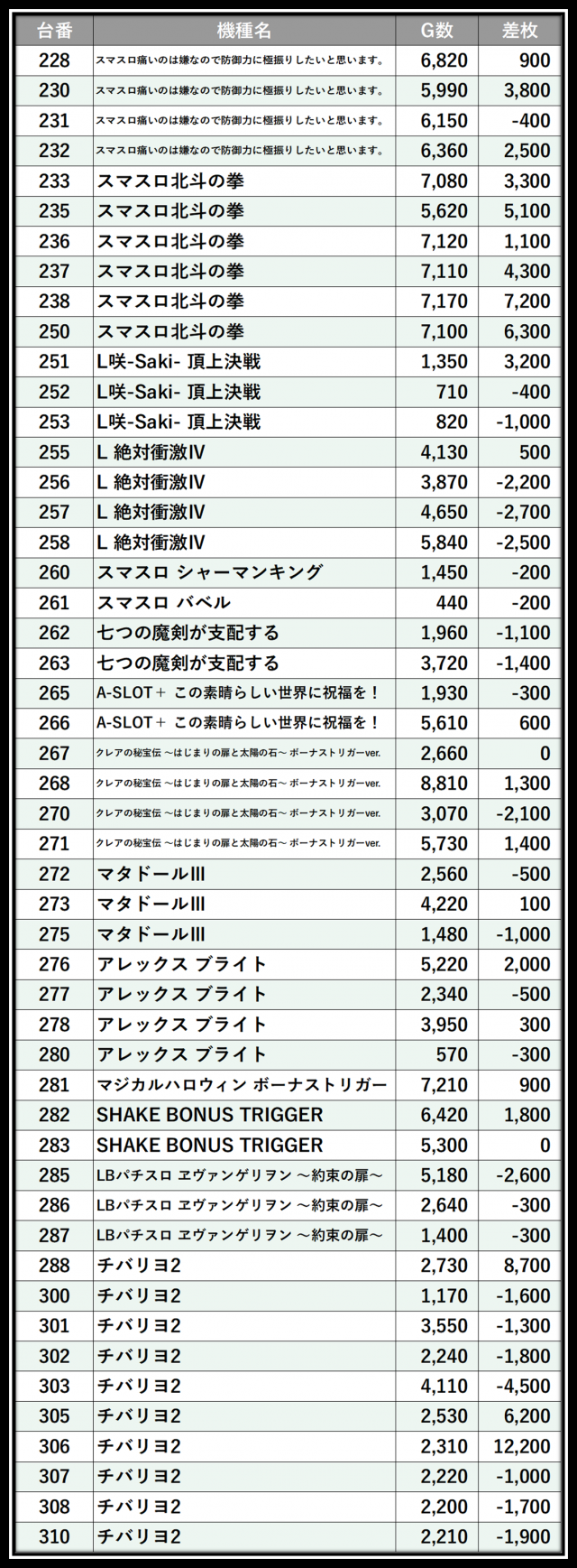 その結果の中から、ぱちタウンが注目すべきポイントを厳選してユーザーにお届け!プレイヤーが楽しんだ一日を下記データにて振り返ってみて欲しい。