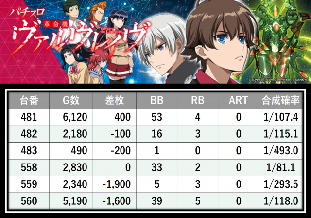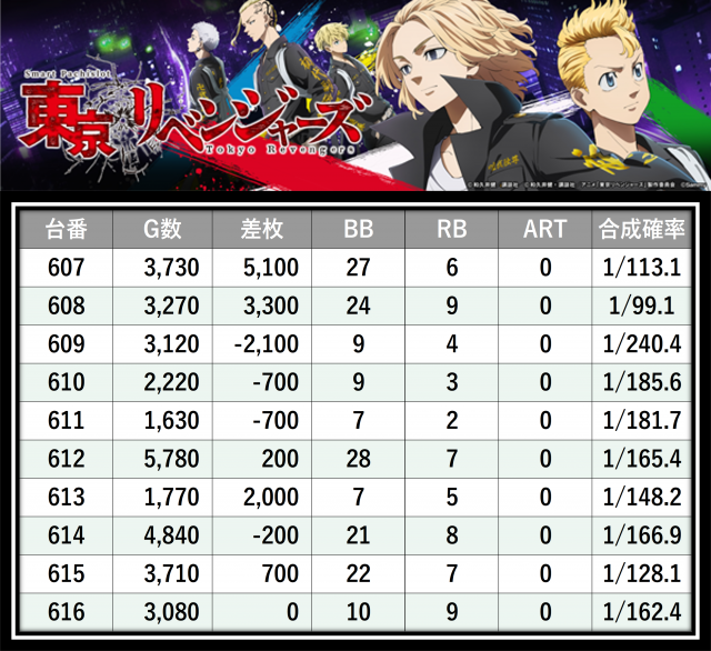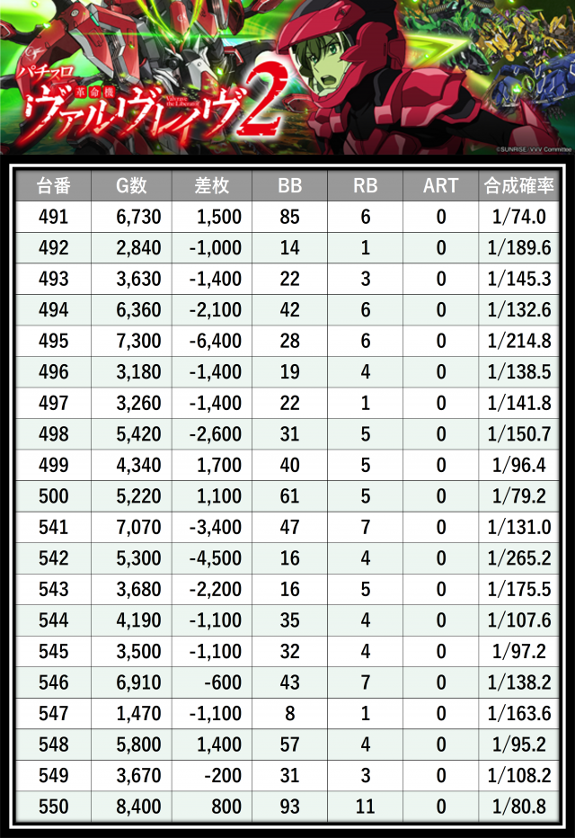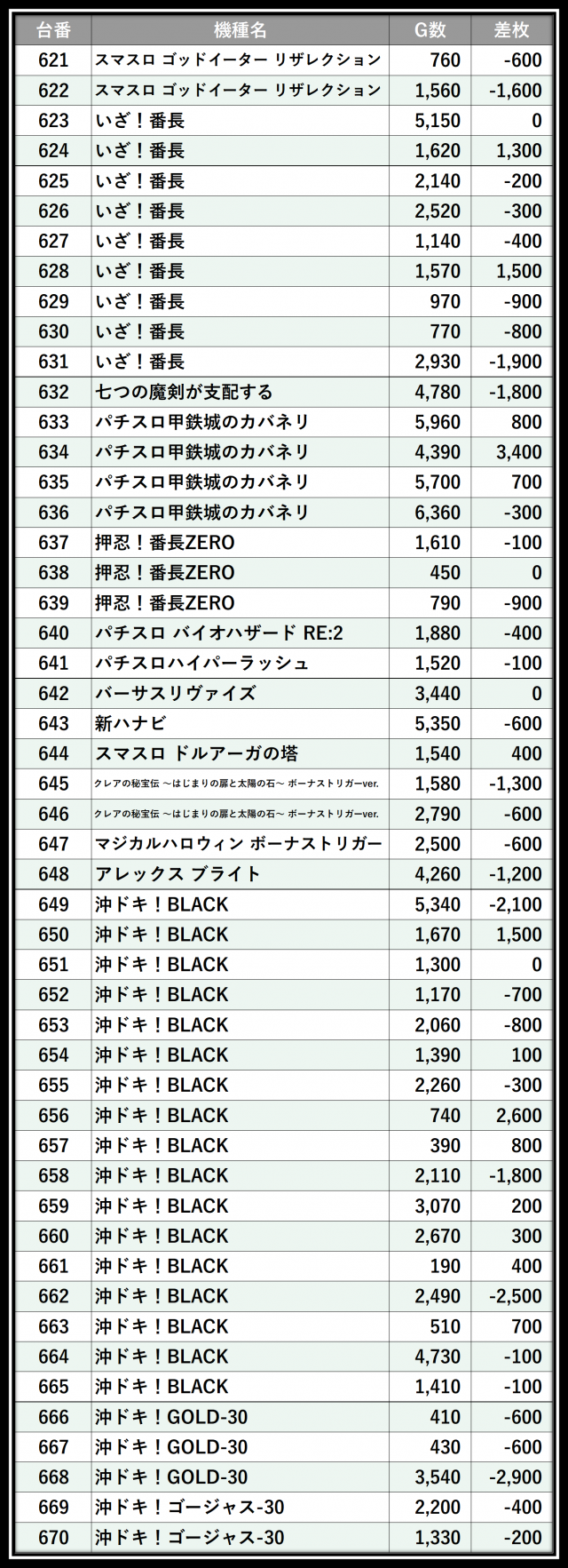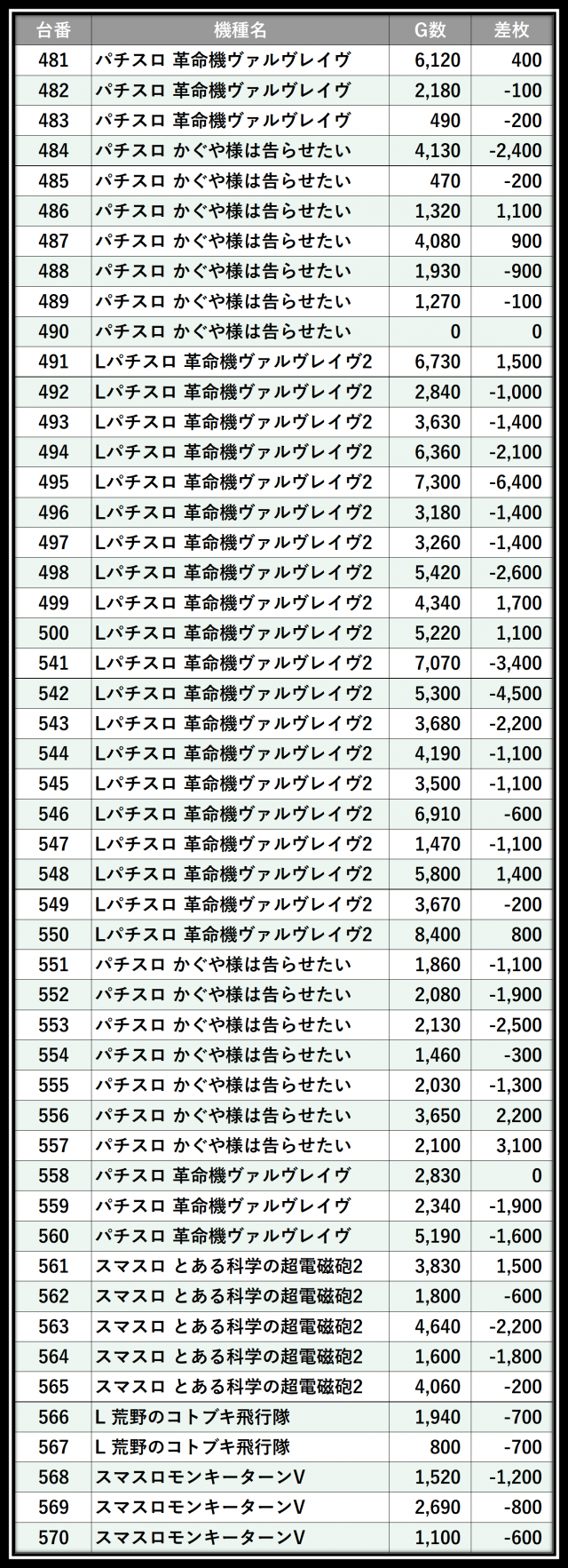 ※差枚数順に掲載しています
