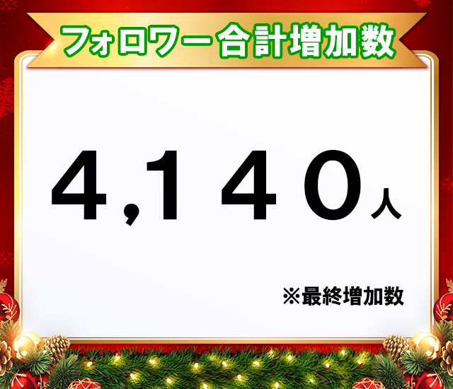 また、参加メンバーの全員で期間内に「合計フォロワー数が8888人アップ」で目標達成となり、皆さんのプレゼント当選確率が2倍となります!