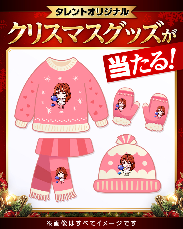 参加タレントは8名。タレントのオリジナルクリスマスグッズは各1名様、計8名様に当たります。