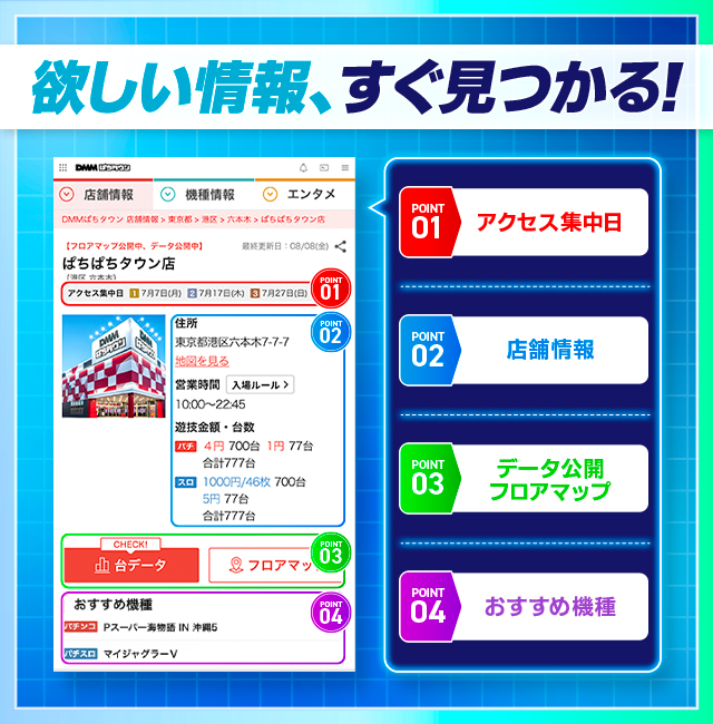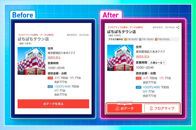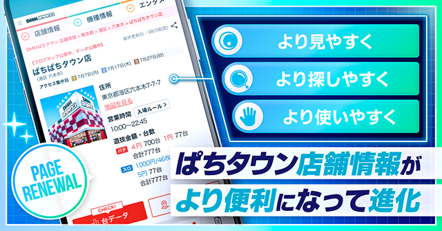 店舗情報ページに限らず、ぱちタウンはユーザーのみなさまのためにアップデートを続けていきますので、今後とも、DMMぱちタウンをよろしくお願いいたします!