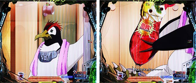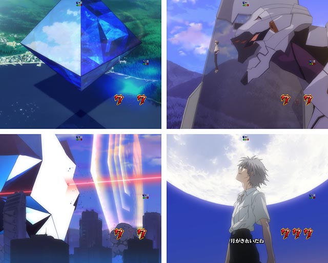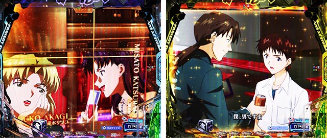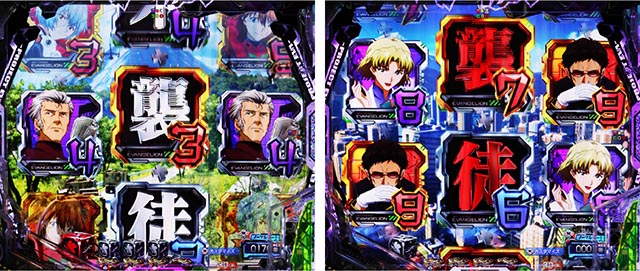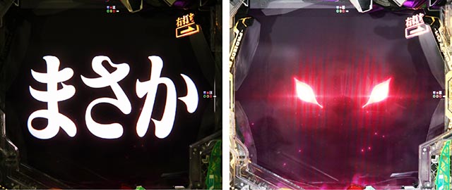 各リーチがハズれて変動中背景に戻る前にカヲルやノイズといったアクションで逆転大当り!