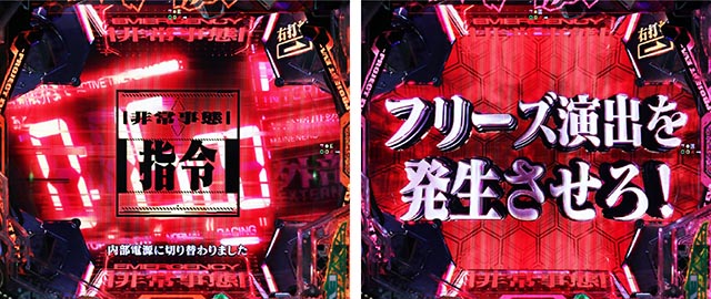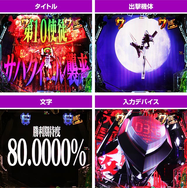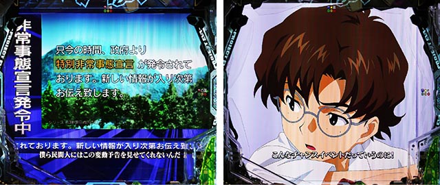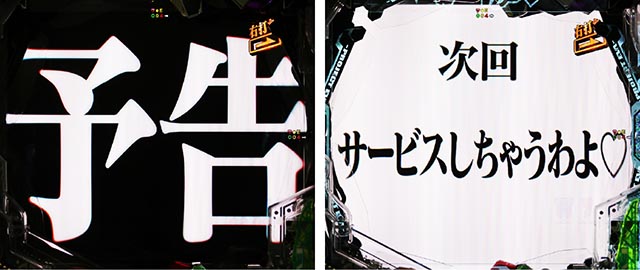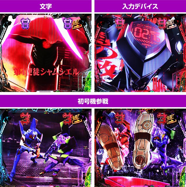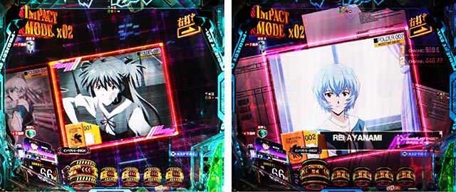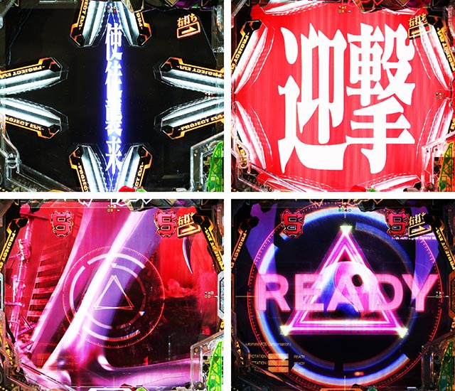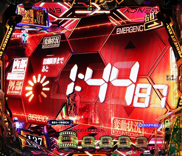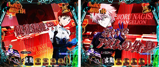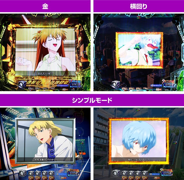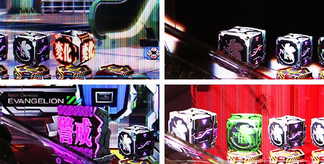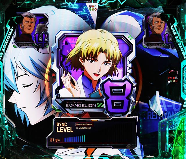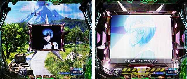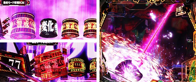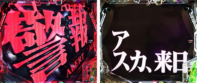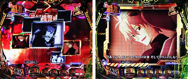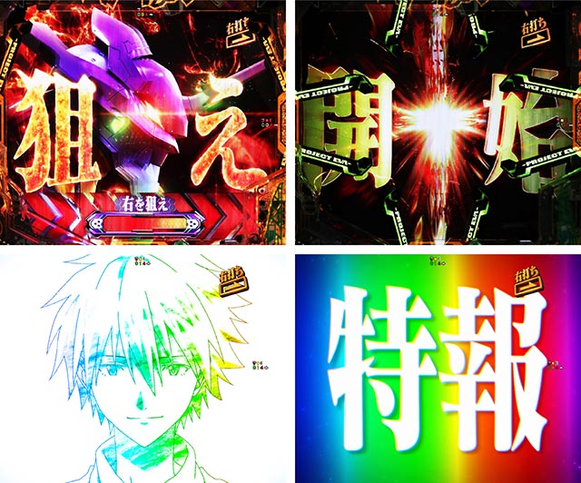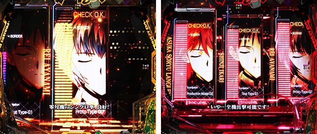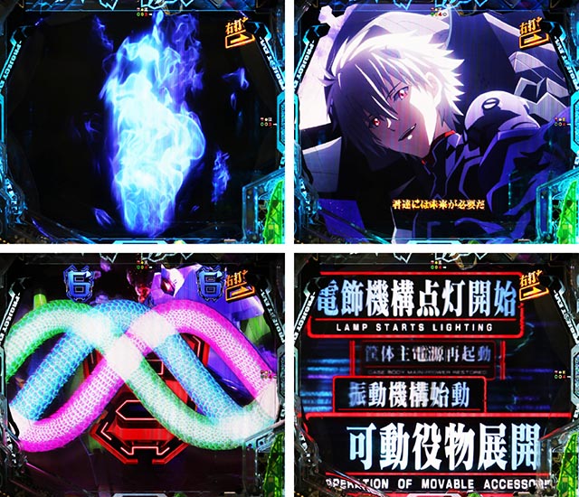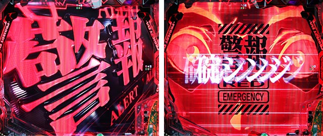 アラートは効果音を伴い画面左右にオブジェクトが出現。咆哮は台枠最上部の初号機咆哮役物がうなりを上げる。次回予告は専用の文言によるパタ―ンが生じ、変動中のデフォルトパターン発生も通常通り適用される。カヲルレイ背景は一発告知的な役割だ。