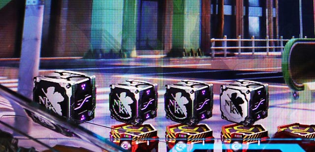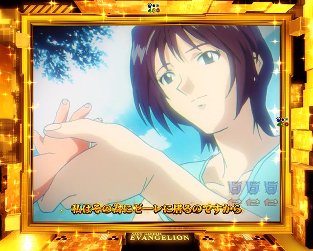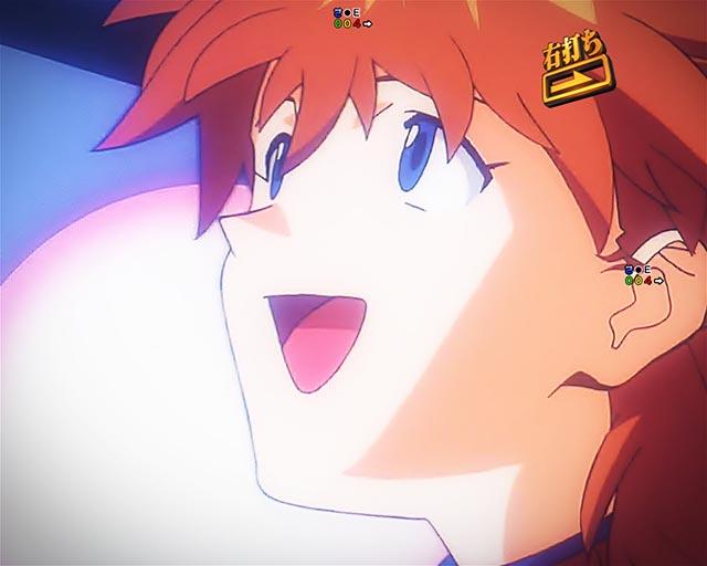 ヘソに玉が入った際、画面下EVAパネルが光る色に注目。