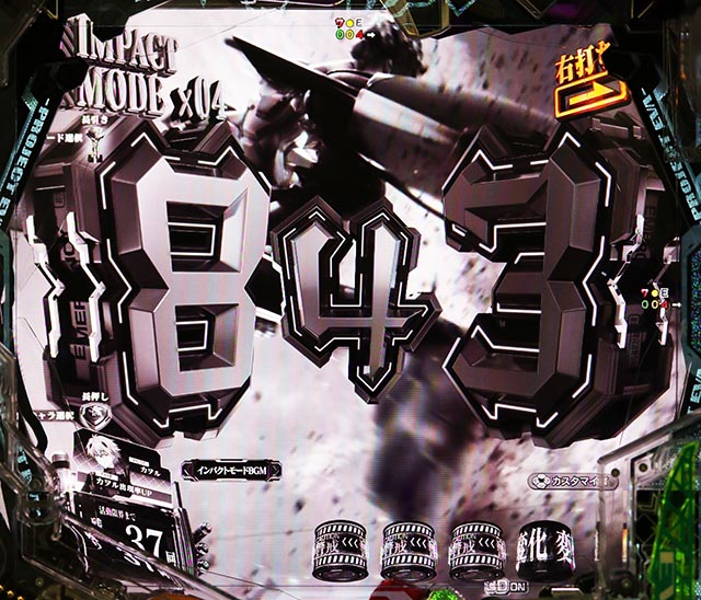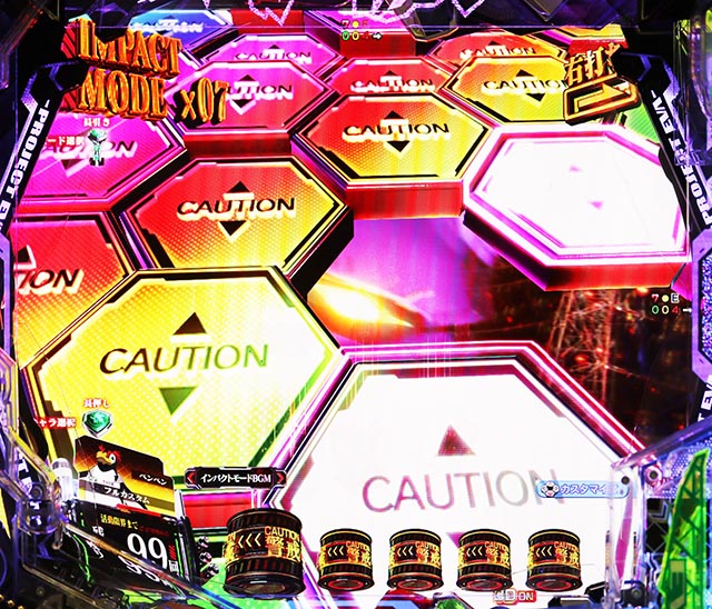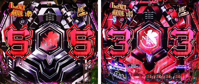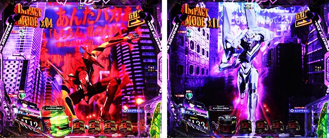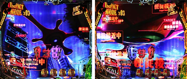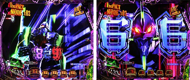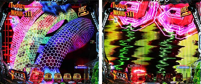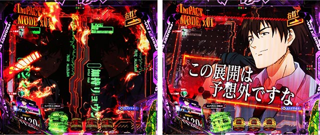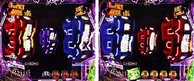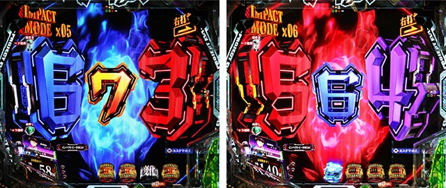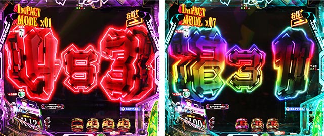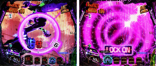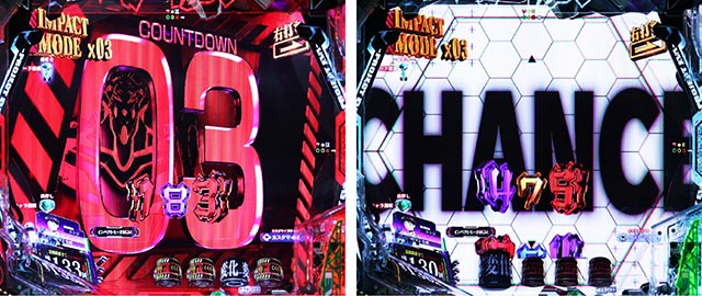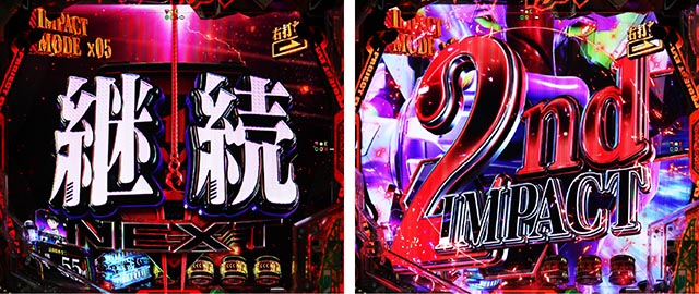 IMPACT MODEの同名リーチよりもチャンスアップは減っていて、2種類どちらも発生すれば連チャン必至だ。
