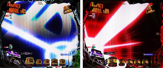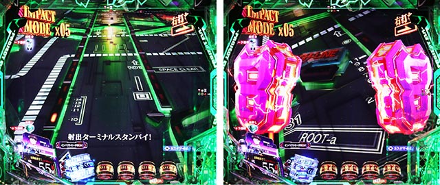 IMPACT MODE中リーチとの違いは対戦相手と信号機チャンスアップが火花に変わっているぐらい。「READY」出現で大当りになるなど、その他の概要にあまり変化はない。