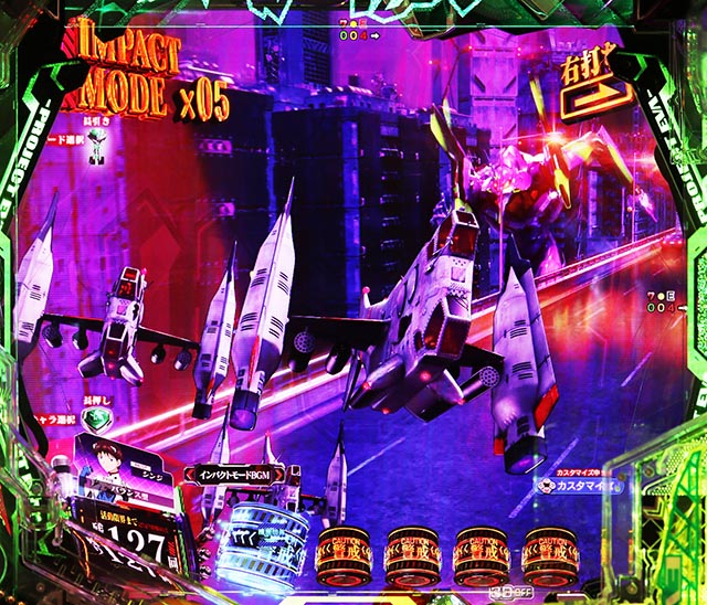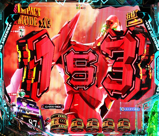 ハンドルから風が噴き出る福音エアーは超激アツで、インパクトフラッシュアップと同じくカスタムにより大当り占有率が高まる。