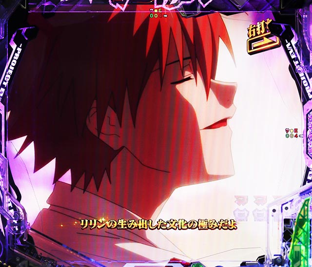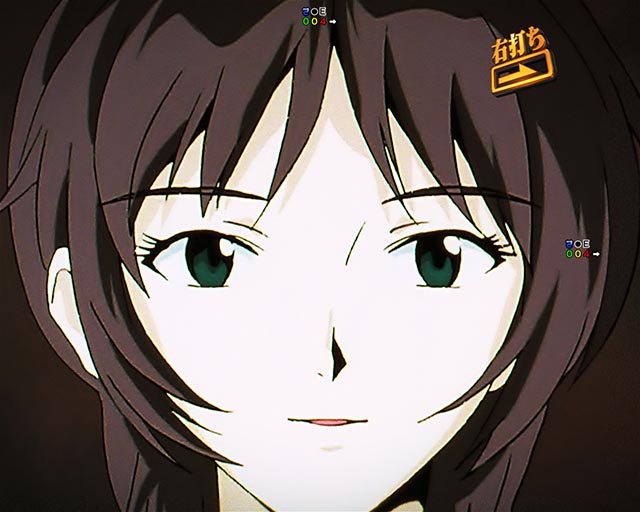 「右を狙え」のナビから玉を入れた直後、虹フラッシュからカヲルのアップと「特報」文字により4800BONUSが降臨!