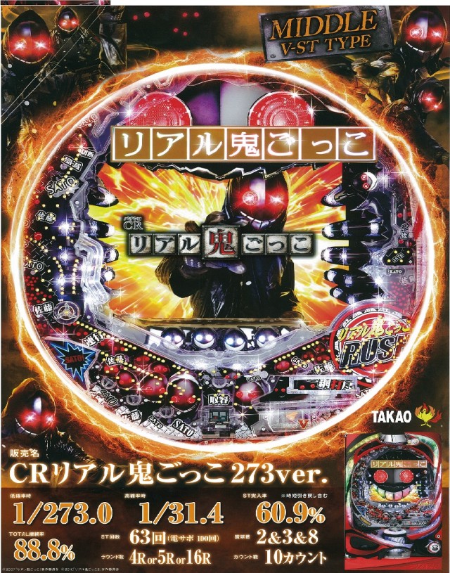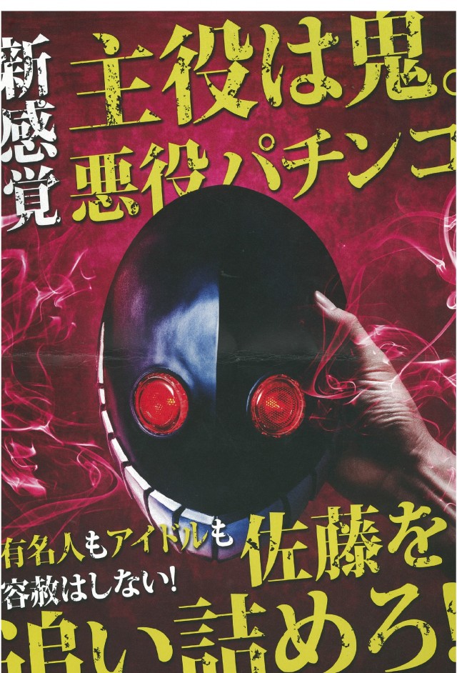 盤面には視界を覆い尽くす「鬼フェイス」役物が鎮座し、「佐藤」と書かれた役物をスタンガンアームで捕獲すれば大当たりという解りやすいギミック。