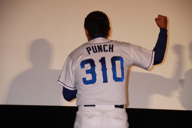 映画試写会&パチンコ『CRリアル鬼ごっこ』の発表では、冒頭、パチンコ機に出演、プレミアキャラとして登場するパンチ佐藤さん、佐藤かよさんが登壇。