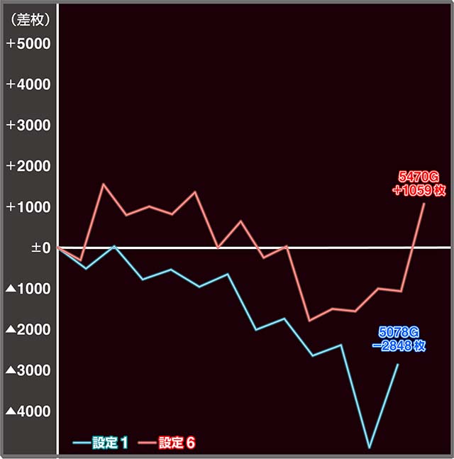 設定6も前述した通りGOB揃いからのスタートダッシュを決めたものの、その後の展開が悪くマイナス域に転落。