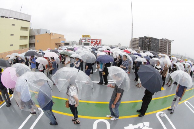マルハンと言えば、つい先日も新宿東宝店がグランドオープンしたばかり。 これは期待しない方がおかしいくらいだ。 オープンは12時、そして朝から大雨にも関わらず、10時前から大勢のファンが詰めかけていた。織り込み済みとは言え、相変わらず圧巻される。 屋上駐車場は詰めかけたファンで埋め尽くされ、大雨の中ファンの熱気、狙い台の話題でザワついている。