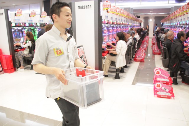 店内でカウントダウンのアナウンスが始まると、すでにスタンバイ済みのファンがハンドルに、レバーに手をかける。