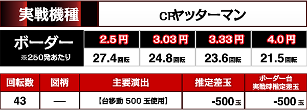 250玉あたりの回転率がボーダーと同じだった場合は、追加投資をするところだった…。