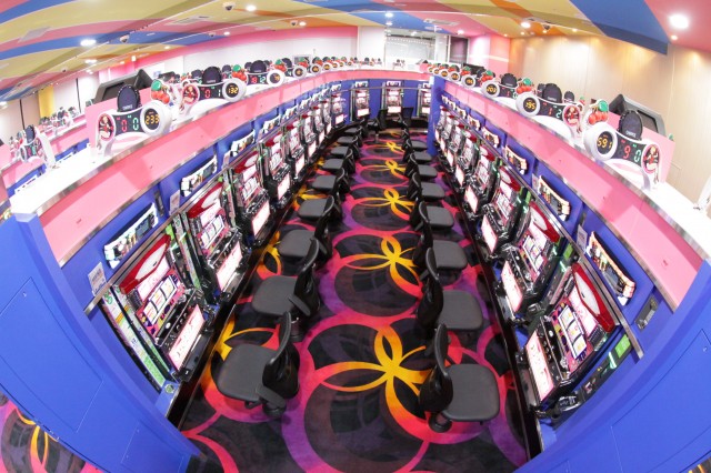 一面のジャグラーフロアは、天井の照明・装飾も凝っており、島上のランプ類、装飾も期待感をくすぐる。