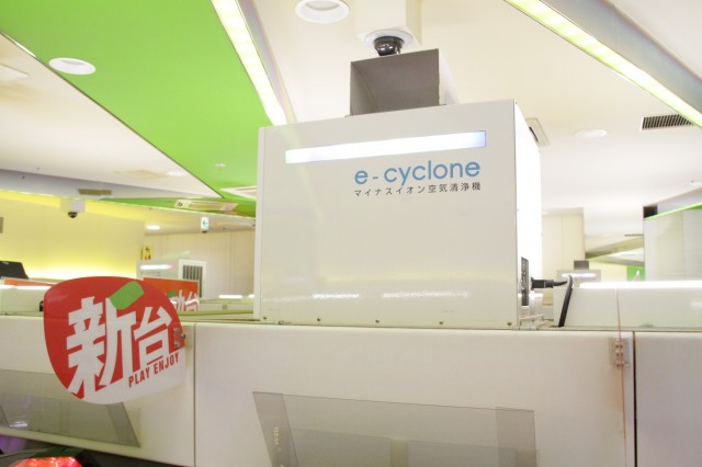 そして各台には分煙ボード、島上には、空気清浄機も装備され、スロット用の各台計数器も付いているという快適な「住空間」ならぬ「遊空間」を演出。