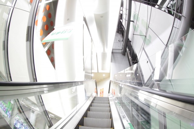 エレベーターは札幌駅、そして駅前の商業ビル「ESTA(エスタ)」も眺める事が出来る開放的なガラス張り。店内側に振り返ると各フロアも見ることが出来た。