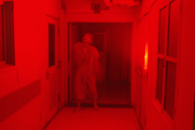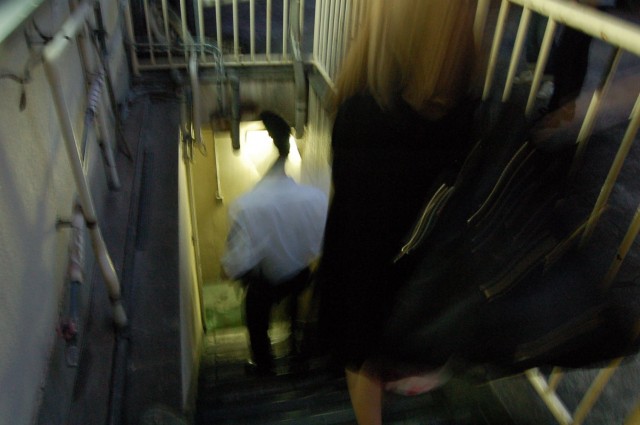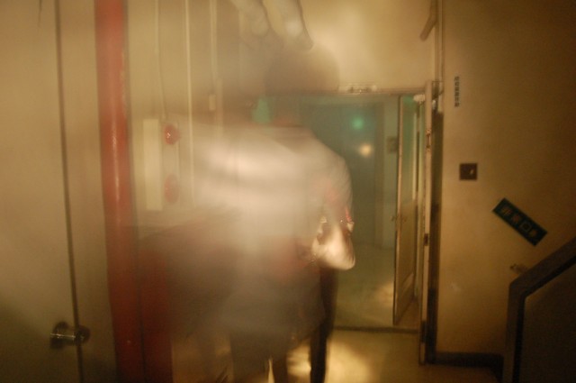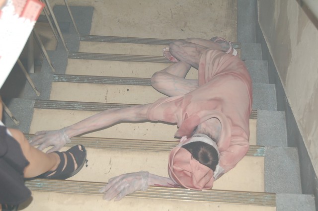 疲れているのか、階段で寝ているナース。怪談か・・・![]()