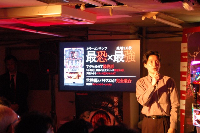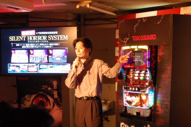 ホラーは好きではないと、話ながらもこの日発表されるのはコナミグループのホラーゲーム『サイレントヒル』をモチーフにしたスロット台とのこと。