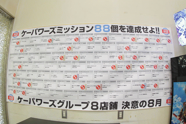 ここにも、お遍路よろしく出入り口に「88個」の「ケーパワーズミッション」が張り出され、現在の状況が一目でわかる。