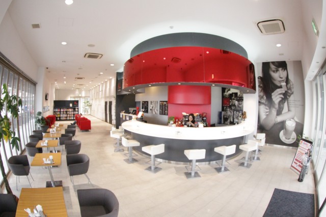 店内は広々としたひとつなぎの空間で演出され、こちらもパチンコ・パチスロ共に各台計数器標準装備。