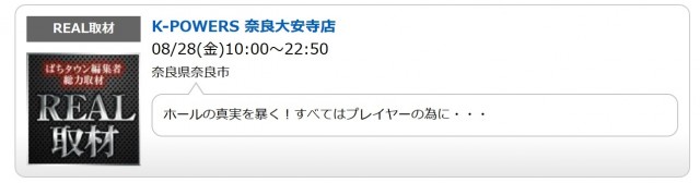 8月も半ばを過ぎたころ、REAL取材の担当者から最終週の「8」のつく日、近畿のあるチェーンで2店舗同時にREAL取材を行うという話を聞いた。