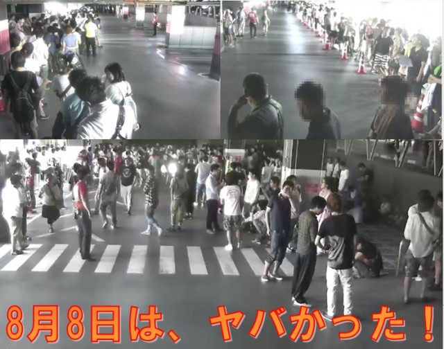 去る8月8日の立体駐車場の並び。大阪本店、奈良大安寺店共に人であふれたらしい