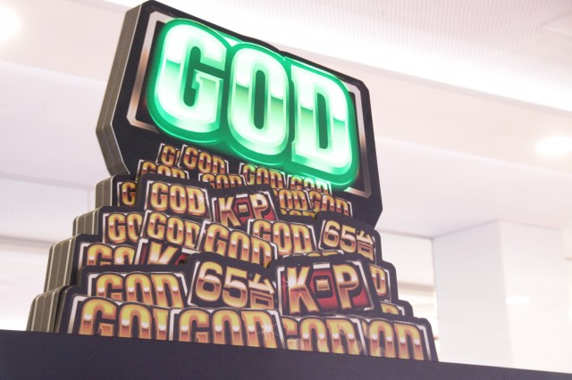 いきなり、店長、いや「KPマン」のアクの強い肖像がお出迎え。そして、豊富な賞品を取りそろえる賞品カウンターでは女性スタッフが慌ただしく接客対応。![]()