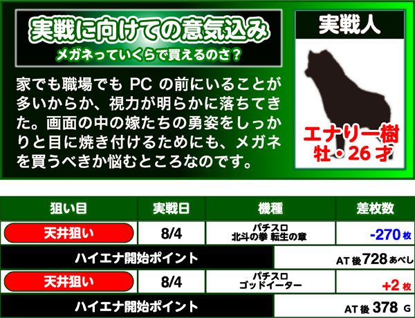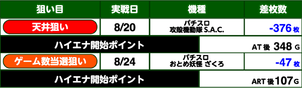 これでもトータル差枚はプラスなのか…。ハイエナだけで収支を分けてなかったので、何となく負けてるんだと思ってた。